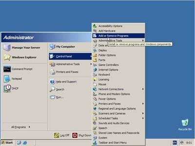 Untuk membangun Web server, maka ikuti langkah berikut. Klik tombol start lalu control panel. Klik Add or Remove Programs.